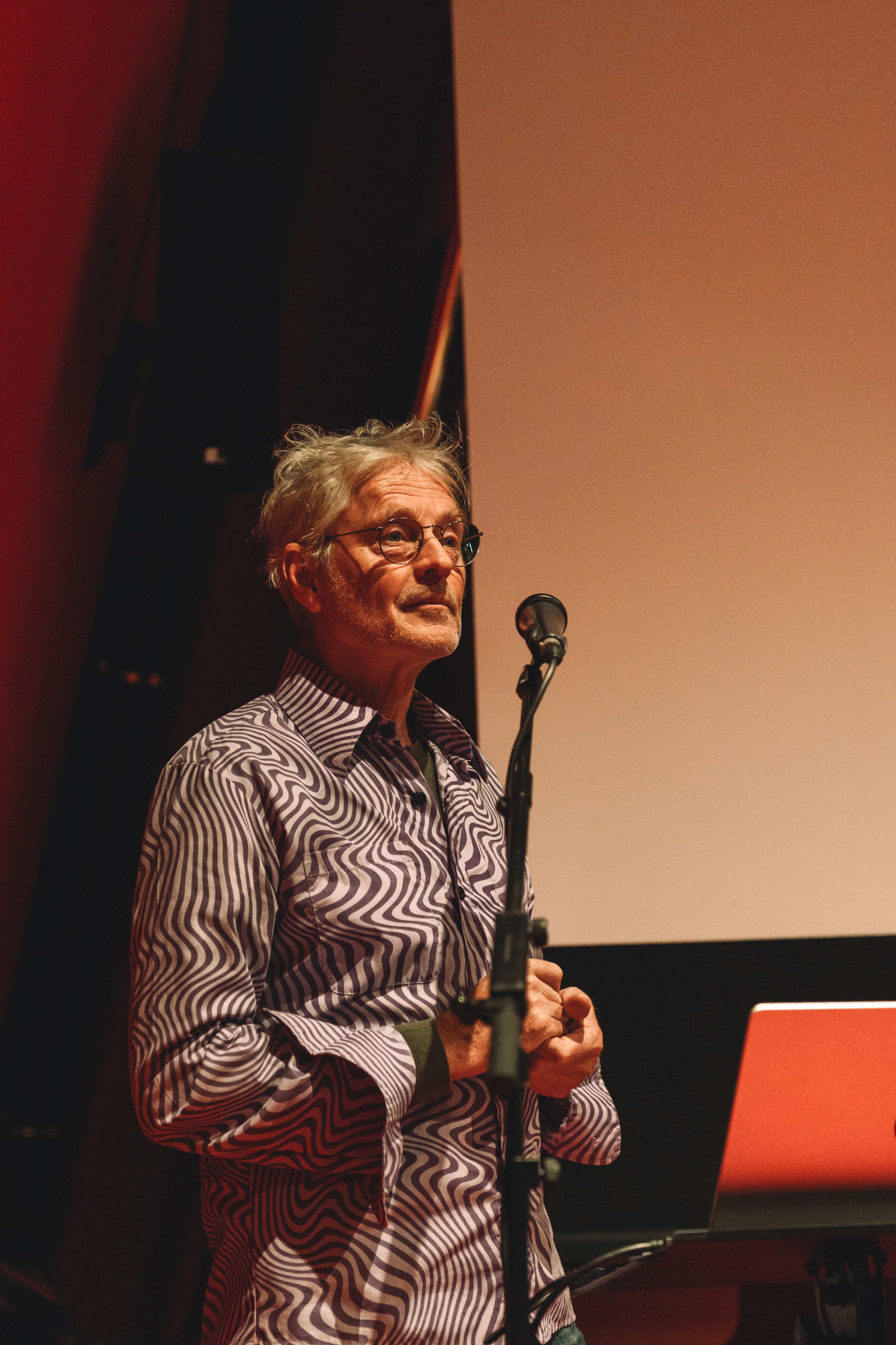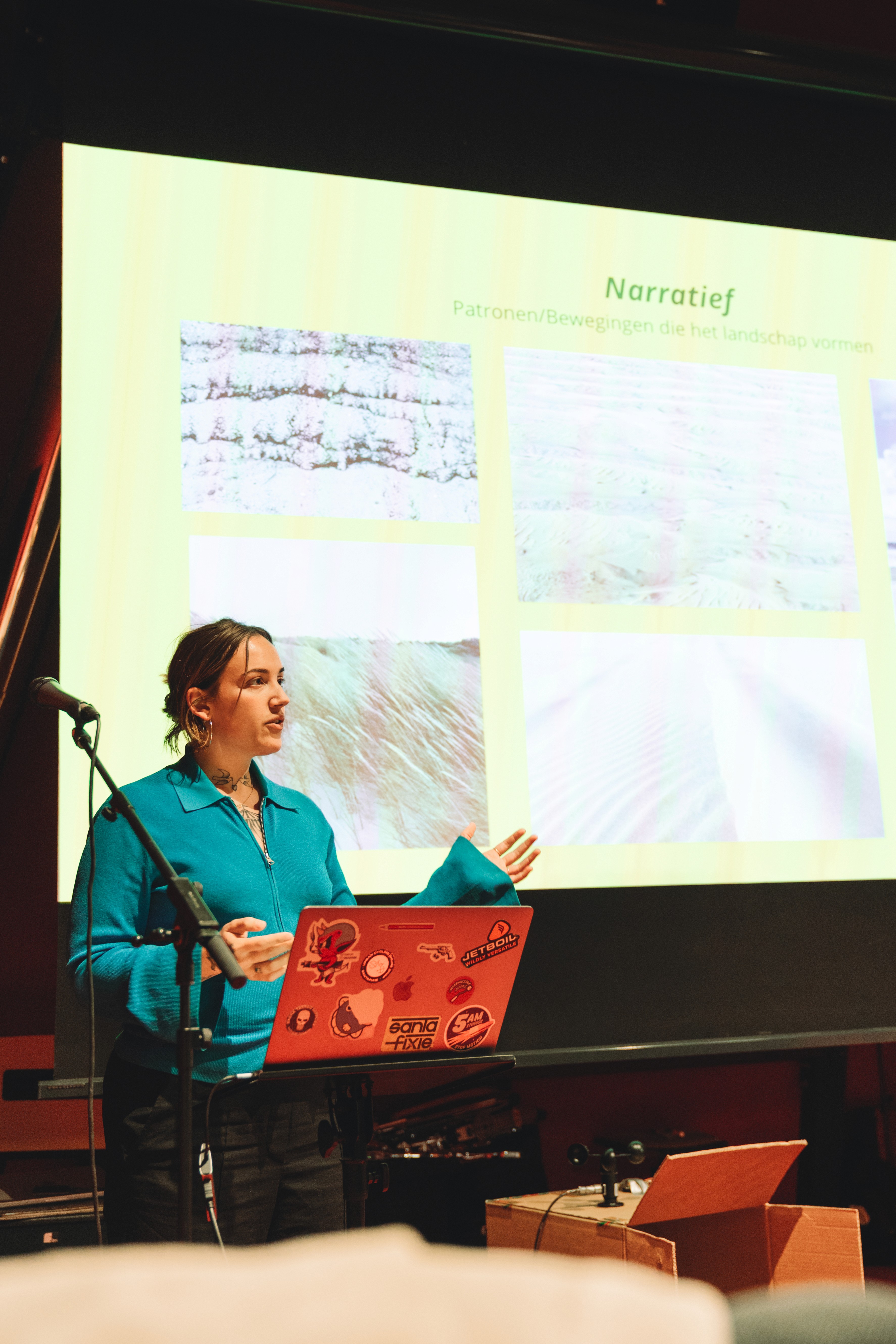 Vervolgens was het woord aan animator en kunstenaar Jikke Lesterhuis. Als introductie op haar werk kreeg het publiek een sneakpreview van de schitterende stopmotion animatiefilm Wad is, is nu te zien over een vogelrestaurant op een zandplaat in de Waddenzee dat leeft op het ritme van het tij, tot dat.... Wat er precies daarna gebeurt is vanaf nu in bioscopen te zien. Ook haar onderzoek op het eiland heeft allerlei verwachte en onverwachte resultaten opgeleverd. Ze vertelde over haar fascinatie voor kiezelwieren die ze kon bestuderen met de microscoop die ze had geleend bij de Jutter, de school op het eiland, en bestudeerden alle factoren van het getij. De veranderingen die zich elk getijde aan de rand het eiland afspeelden werden in Jikke's ogen onderdeel van een theatervoorstelling. Om de bewegingen die dit ritme mogelijk maken vast te leggen ontwikkelde ze verschillende machines. Hier lees je meer over haar onderzoek.